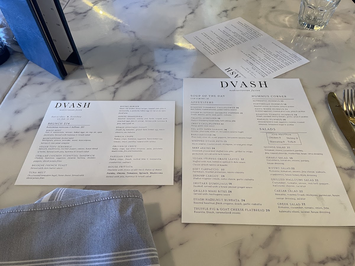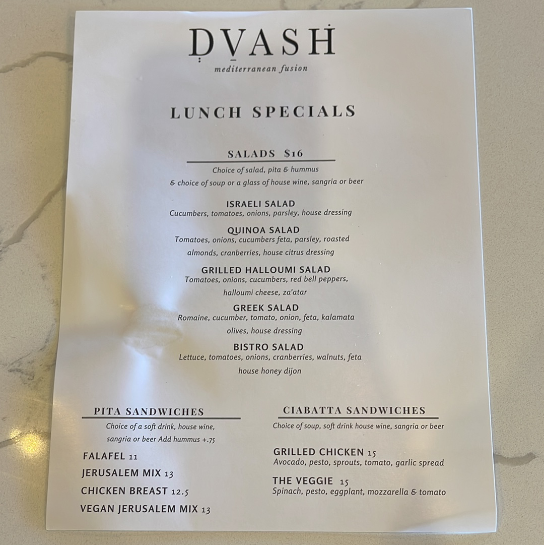 The menu at DVASH boasts an array of standout dishes. Customers rave about the Hummus Haifa, celebrated for its creamy texture and rich flavor, and the Falafels, which have earned loyal fans. Don't miss the Shakshuka, bursting with spices, and the tender Chicken Shawarma, both crafted with fresh ingredients that ensure a memorable meal.