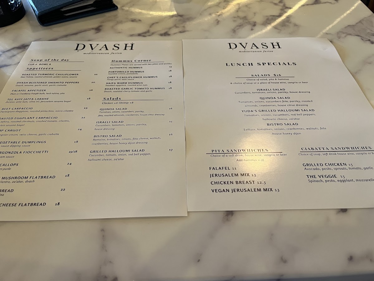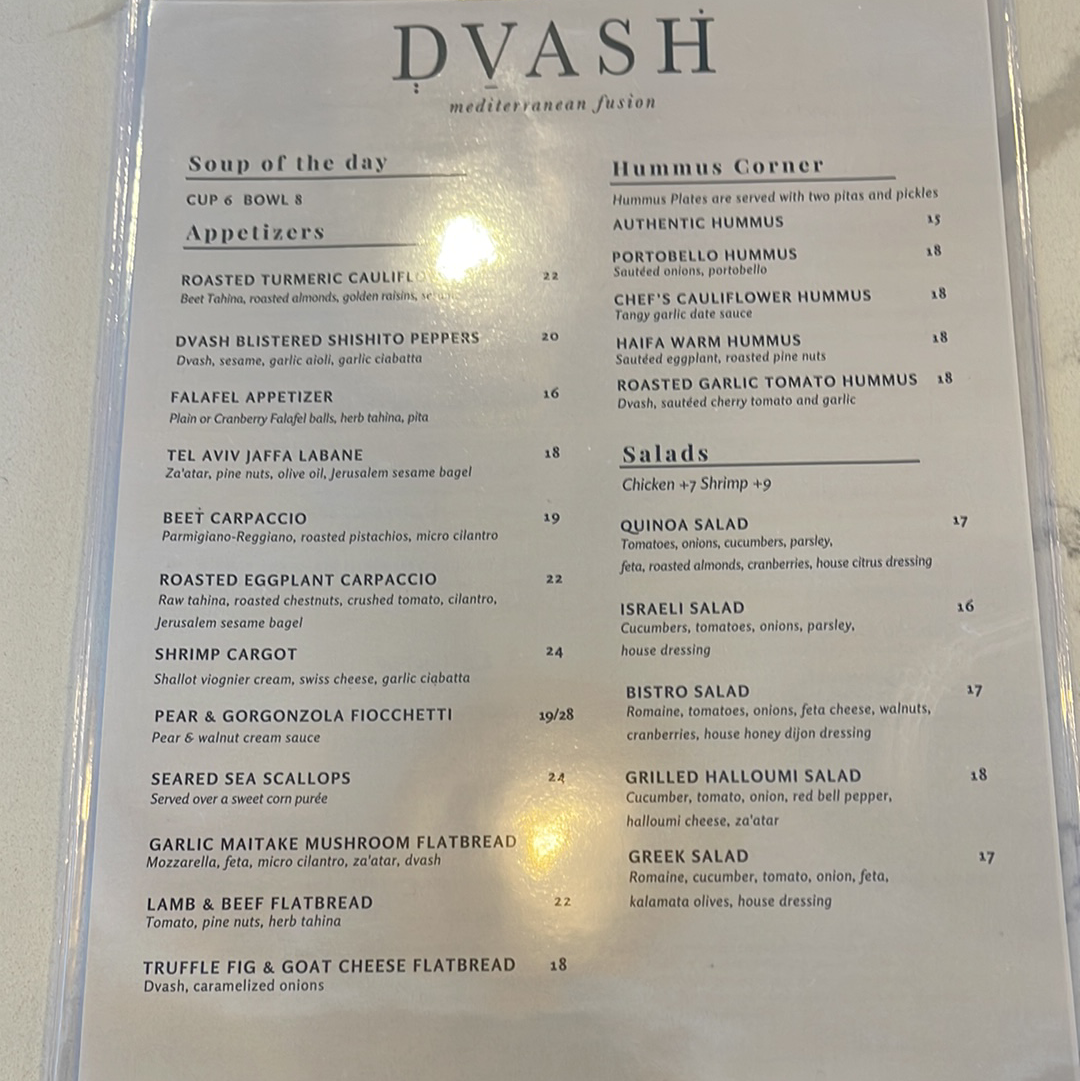 Warm hospitality is part of the experience. Attentive staff, like the commendable Yochai and Emily, enhance your dining with expert recommendations. Whether you're savoring the shrimp cilantro with couscous or indulging in a flavorful burger, DVASH promises a cozy and unforgettable atmosphere—making it a must-visit culinary destination.